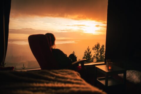 The Forest sauna offers a peaceful retreat where you can unwind in the heart of the woods. Its panoramic mirror windows open onto the surrounding forest landscape and the northern sky, creating a serene connection with nature.