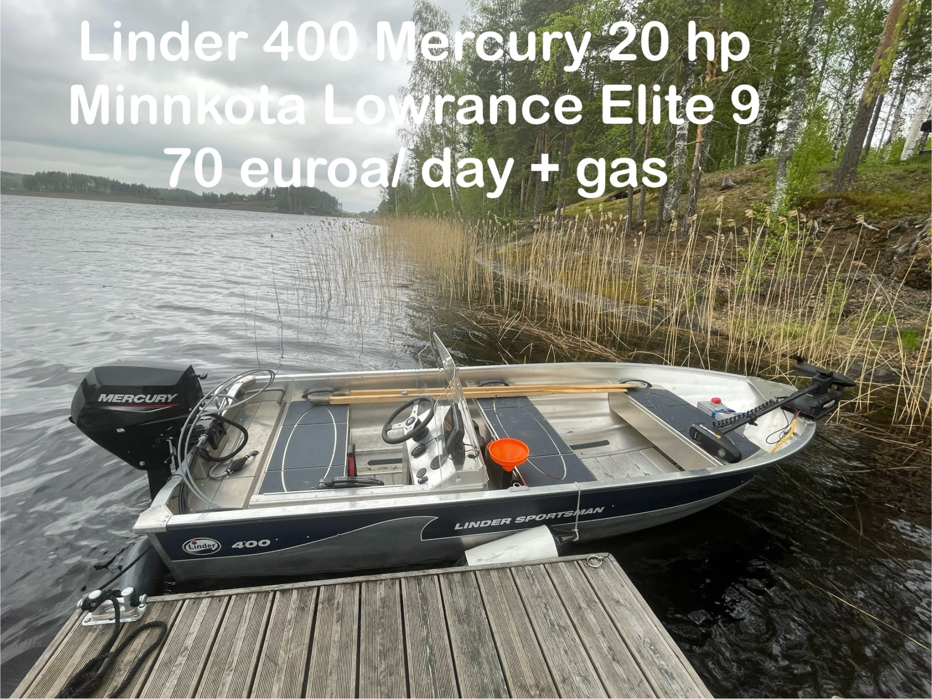 Fishingboat Motorboat Linder / Mercury 20 hp 4T , Lowrance Elite FS 9, MinnKota, 70 per/day